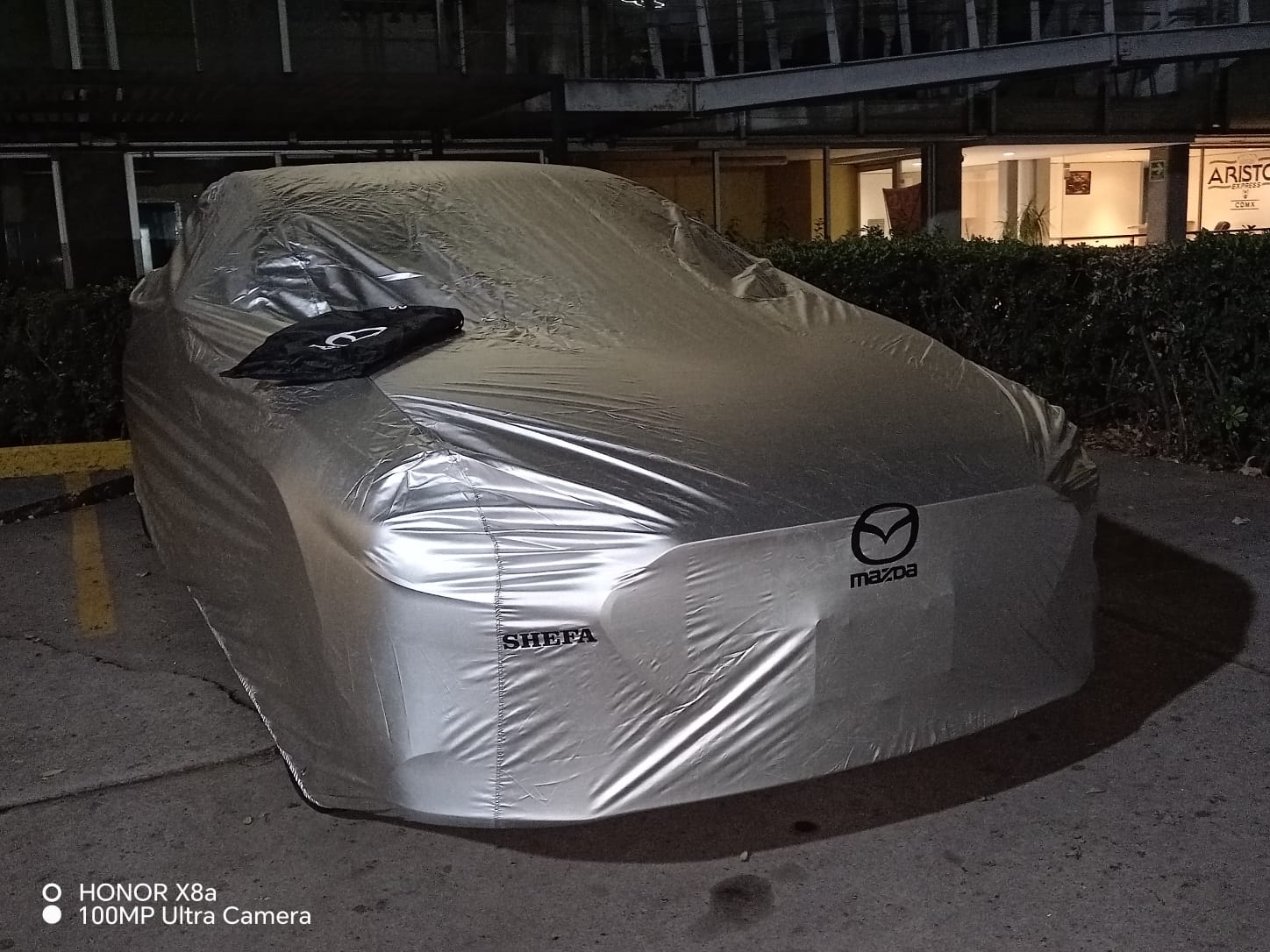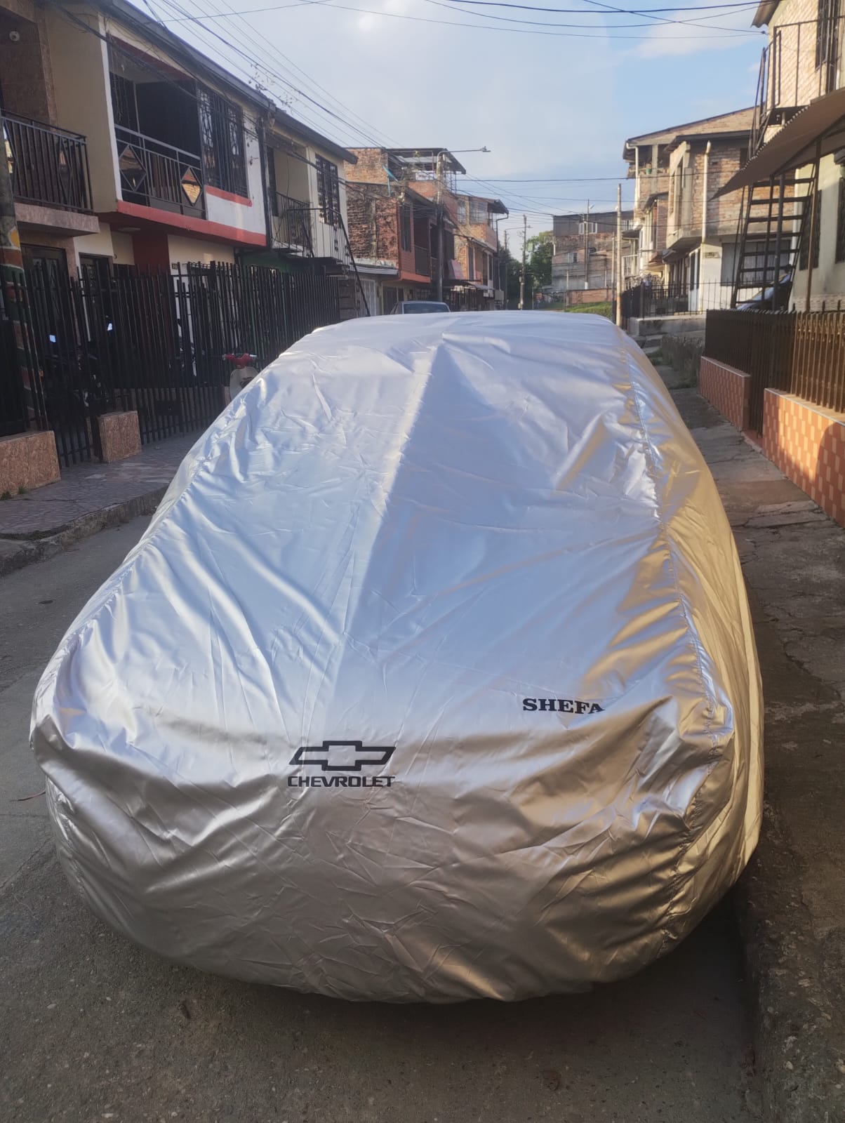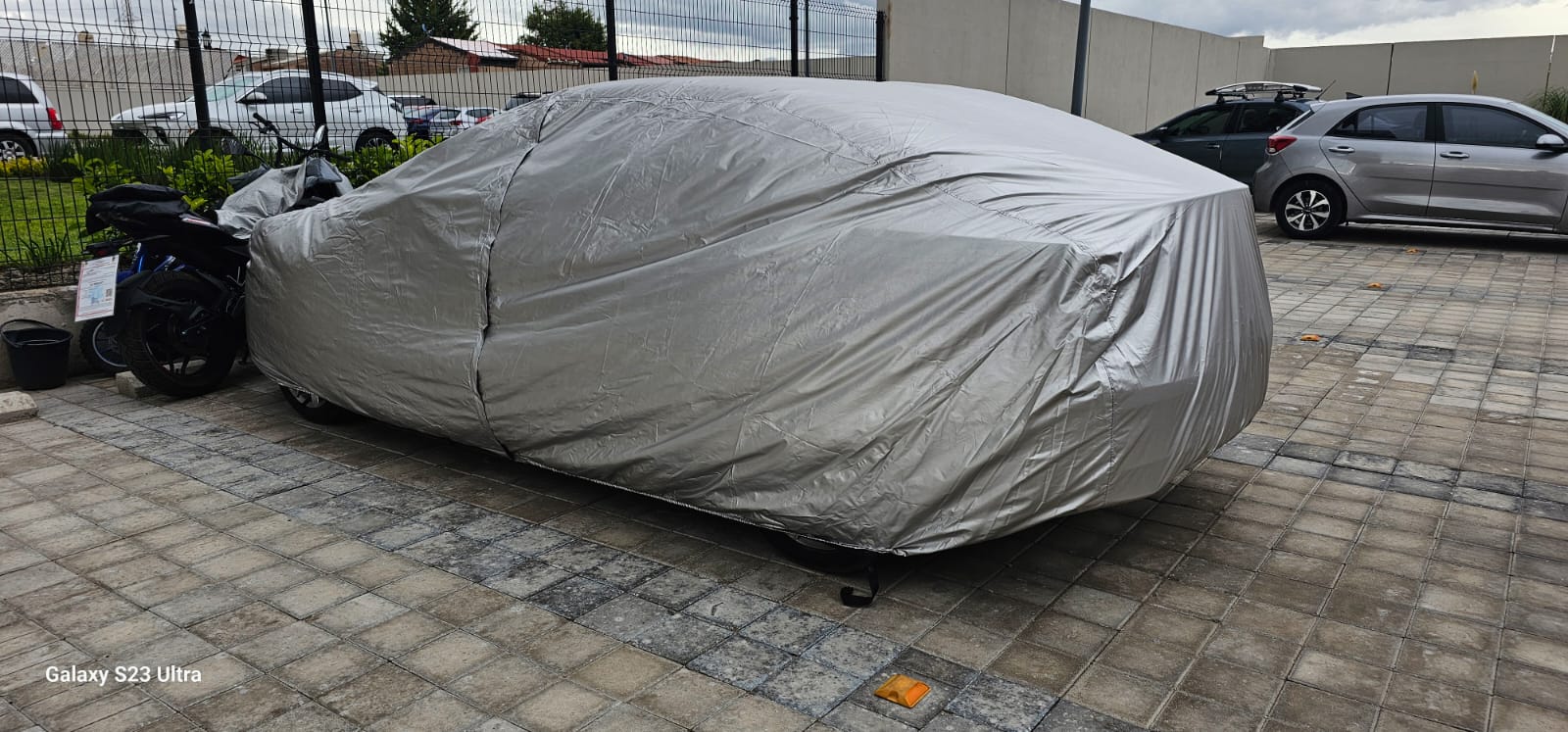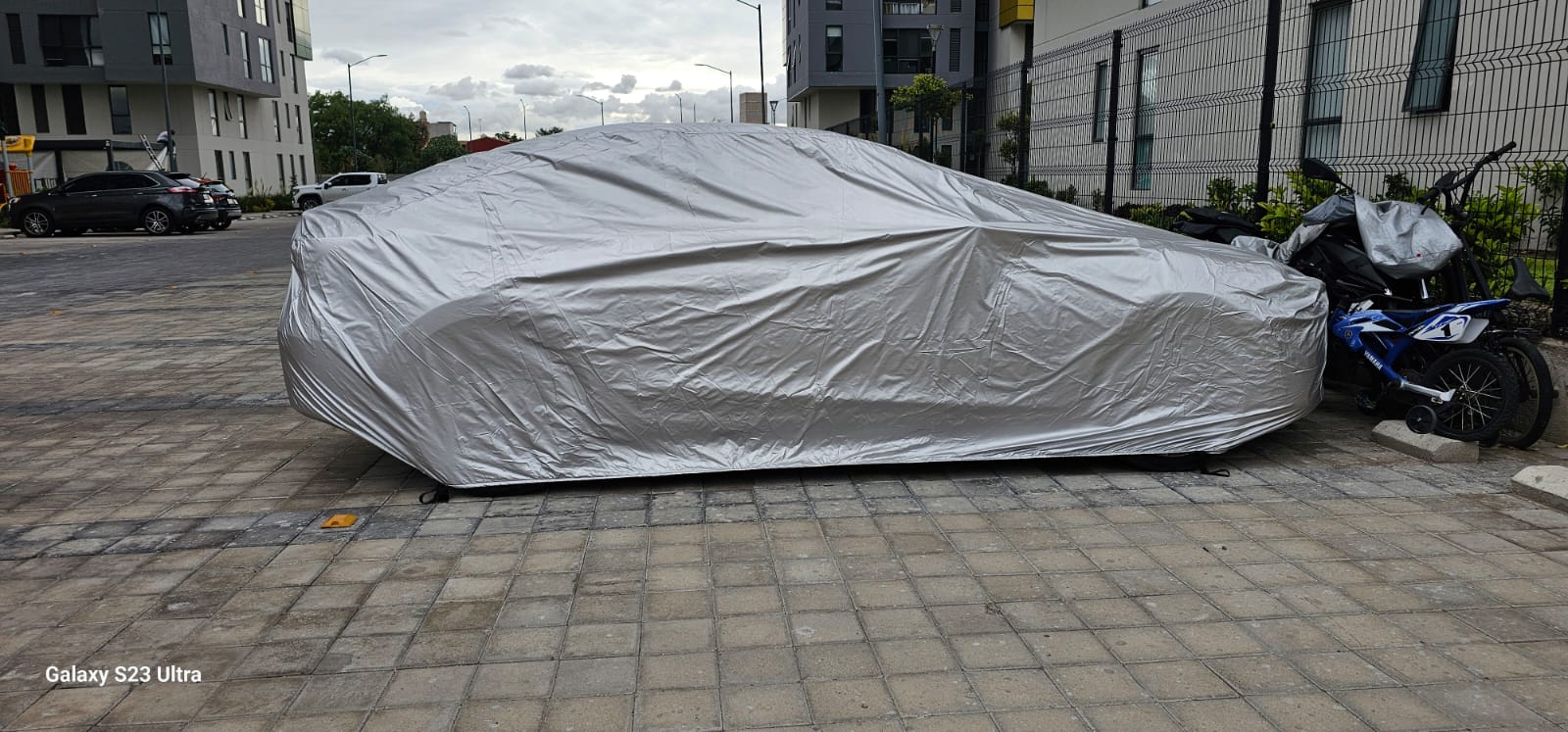 Protector / Funda Premium Afelpada para Auto con Silver Poliéster exterior e interior afelpado (Cambry acolchado). Máxima protección contra UV, lluvia, polvo y micro-rayones. Incluye tula y correa con chapa.