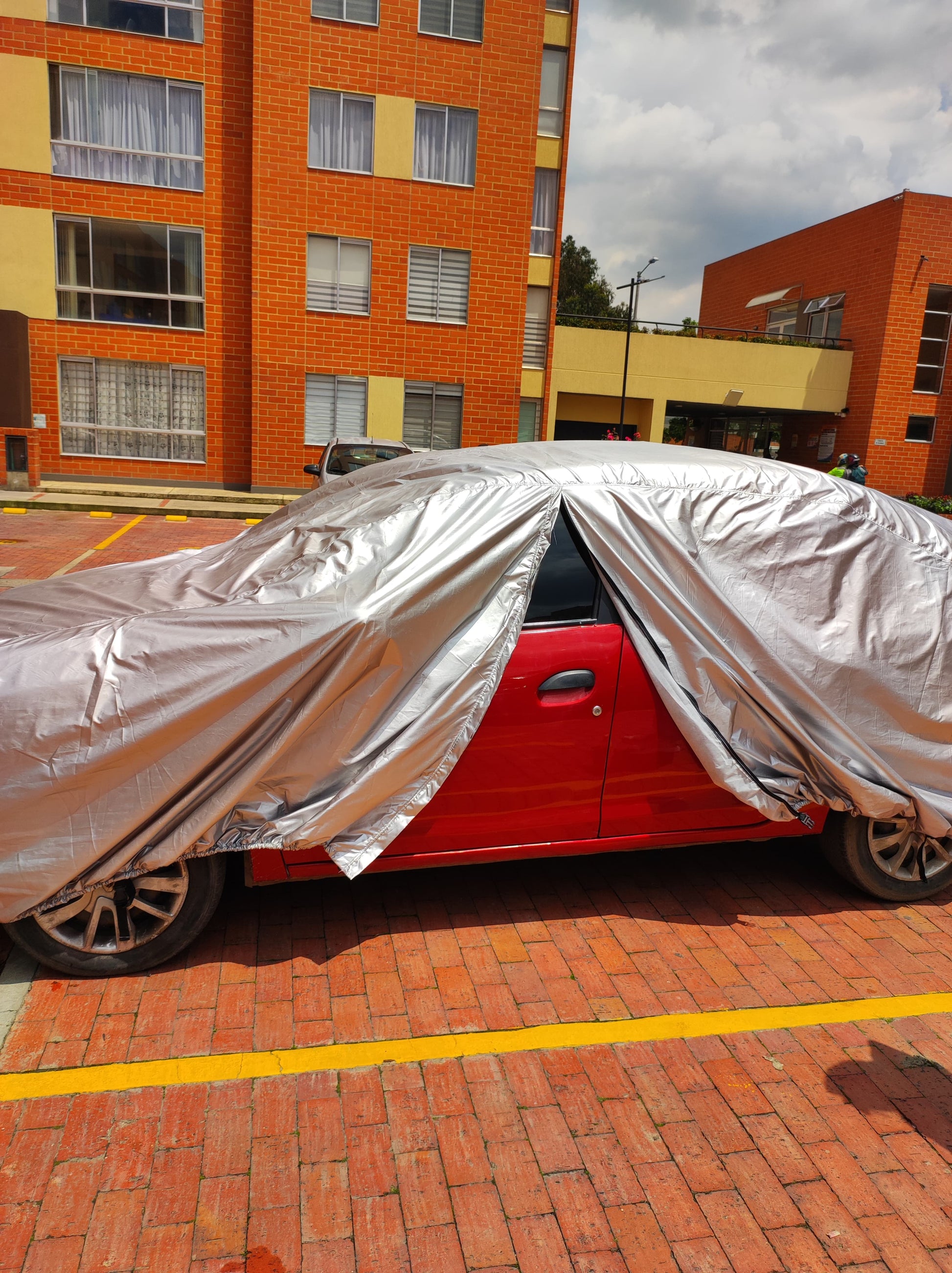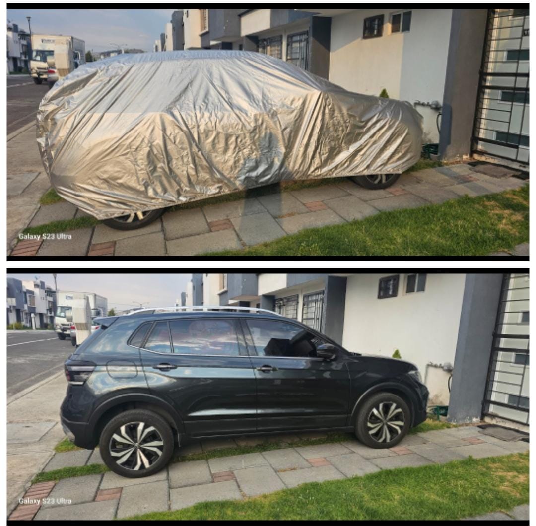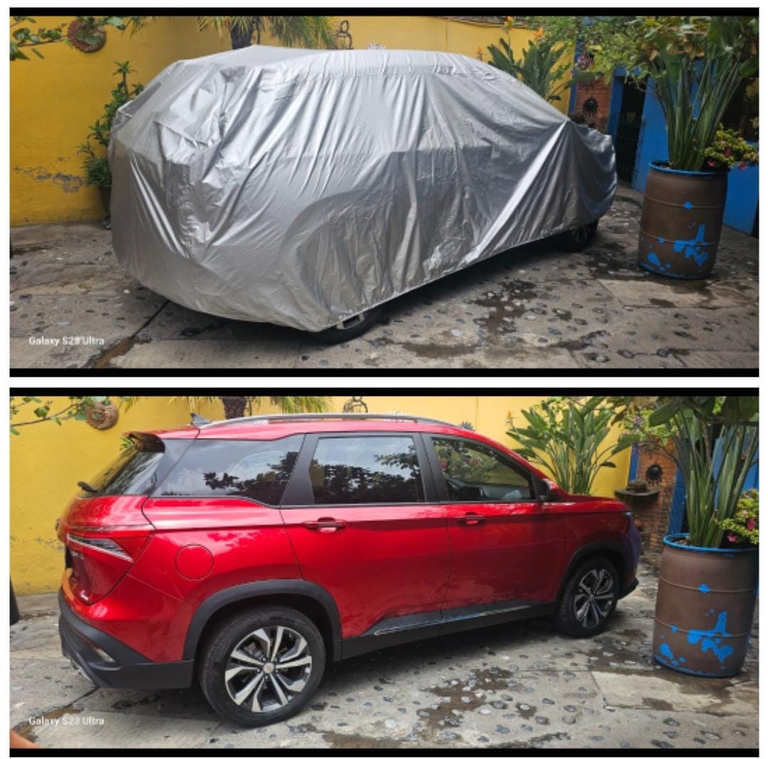 Máxima protección para tu auto / coche: UV, lluvia intensa, polvo y rayones. Exterior Silver Poliéster + interior afelpado/acolchado. Incluye tula y correa con chapa.